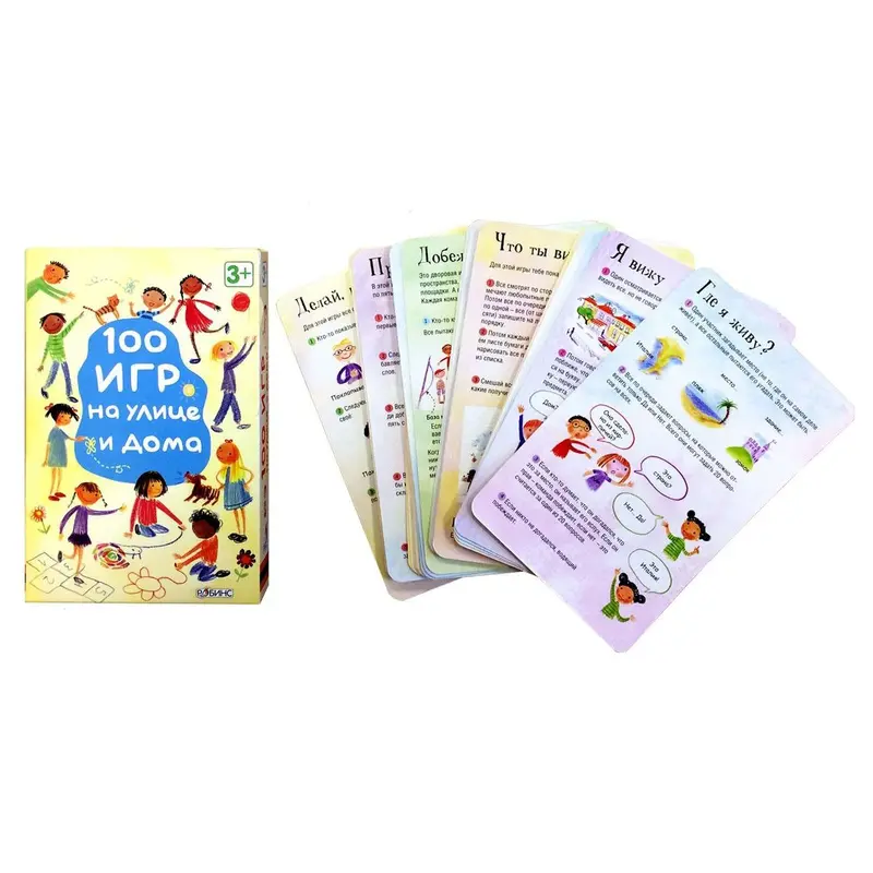 100 ИГР НА УЛИЦЕ И ДОМА - набор игровых карточек от издательства "Асборн". Что делать после школы? А в выходные? А на каникулах? Конечно же играть, играть, играть! Только во что? Набор карточек 100 ИГР НА УЛИЦЕ И ДОМА помогут не заскучать вам в любой ситуации. Просто достаньте одну карточку, на которой будет подробное описание игры: прятки, слова, рифмы, игры на скорость и ловкость, рисование и ещё много-много всего!