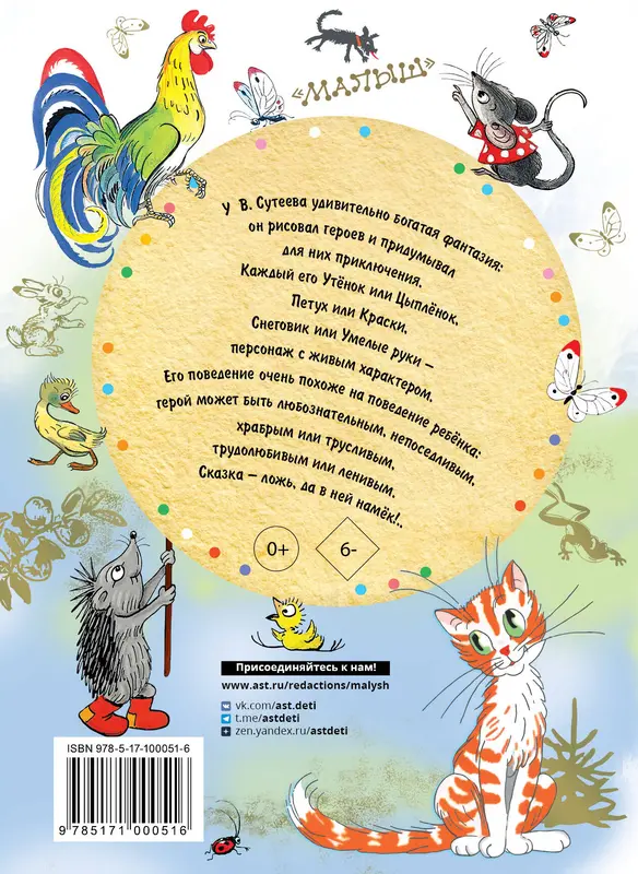 В книге "Сказки" собраны самые лучшие сказки и картинки В. Г. Сутеева. Малышу будут очень интересны сказочные истории про зверят, ведь герои так похожи на него самого! Котята такие же непоседливые, Цыплёнок и Утёнок любознательные, а Заяц и Ёжик так же верят в волшебство. Кроме того, лесные жители могут многому научить малыша: Заяц – щедрости, Снеговик – ответственности, а Умелые руки – трудолюбию и справедливости. Для детей до 3-х лет.