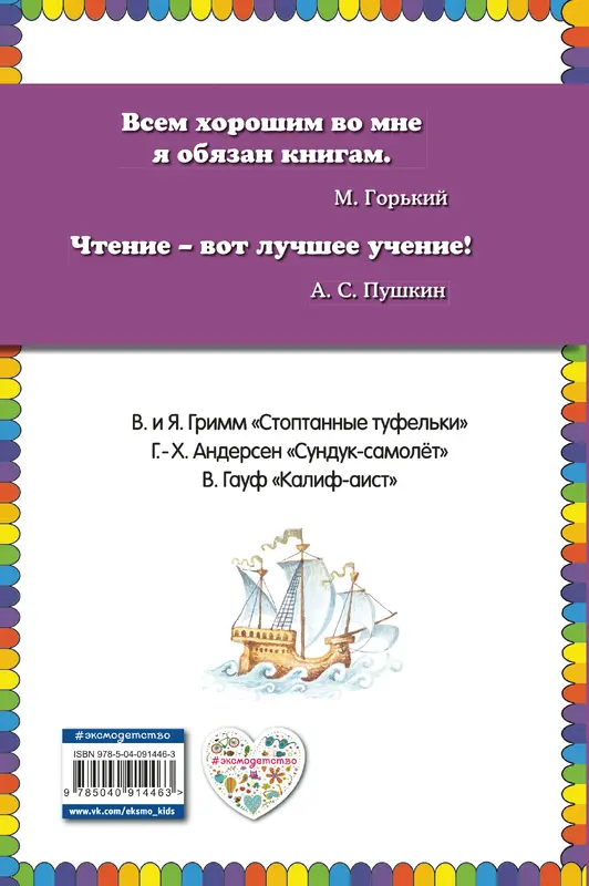 В сборник вошли сказки "Стоптанные туфельки", "Сундук-самолёт" и "Калиф-аист" Произведения лучших сказочников мира братьев Гримм, Г.Х. Андерсена и В. Гауфа учат читателей находчивости, смелости и честности.