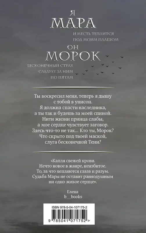 Таких, как я, называют Марами — отмеченными самой богиней смерти Мораной. Когда-то у меня и моих шести сестер был свой путь. Тогда люди нас уважали и просили о милосердии. Они приносили нам подношения и молились нам. Но 200 лет назад все изменилось, когда принц Серата осмелился поднять руку на одну из нас. Я пыталась отомстить, но погибли мы все. Теперь правители Аракена, погрязшие в длительной войне со своим соседом Сератом, решили вернуть меня к жизни. Дать второй шанс на месть и свободу, привязав меня к тому, против кого я никогда не пойду. Таких, как он, называют Морок, и их боятся абсолютно все.