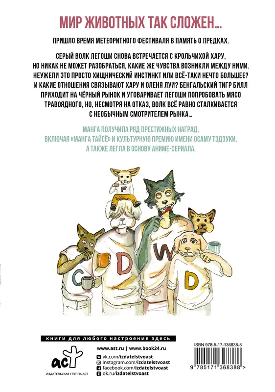 Мир животных так сложен... Пришло время Метеоритного фестиваля в память о предках. Серый волк Легоши снова встречается с крольчихой Хару, но никак не может разобраться, какие же чувства возникли между ними. Неужели это просто хищнический инстинкт или всё-таки нечто большее? И какие отношения связывают Хару и оленя Луи? Бенгальский тигр Билл приходит на чёрный рынок и уговаривает Легоши попробовать мясо травоядного, но, несмотря на отказ, волк всё равно сталкивается с необычным смотрителем рынка… Манга получила ряд престижных наград, включая "Манга Тайсё" и культурную премию имени Осаму Тэдзуки, а также легла в основу аниме-сериала.