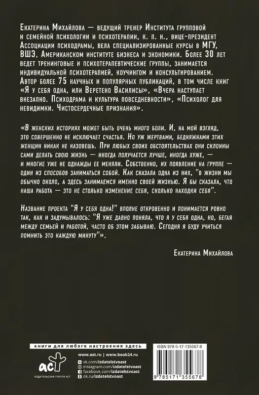 Бывают книги, встреча с которыми становится событием. Как минимум потому, что они помогают взглянуть на свою жизнь иначе, чем мы привыкли. К их числу принадлежит и эта. Именно таким необычным взглядом она и отличается от многочисленных книг "про женщин" и "про женскую психологию". Хотя, разумеется, речь в ней идет и о том, и о другом. А еще о женских психологических группах и их участницах, о гендерных мифах и о том, как они появляются. А также о том, почему мы такие, какие есть, и может ли быть иначе. Узнавания сменяют открытия, боль и страх чередуются с иронией и озорством, пониманием и любовью... Так и крутится веретено, сплетая нитку жизни — жизни женщины и жизни вообще, в которой столько разного... А прочитать книжку полезно всем — независимо от пола, возраста и профессии. Право слово, равнодушными не останетесь.