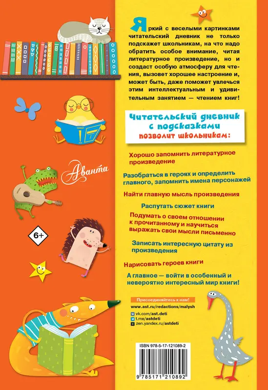 Яркий с веселыми картинками читательский дневник не только подскажет школьникам, на что надо обратить особое внимание, читая литературное произведение, но и создаст особую атмосферу для чтения, вызовет хорошее настроение и, может быть, даже поможет увлечься этим интеллектуальным и удивительным занятием — чтением книг!