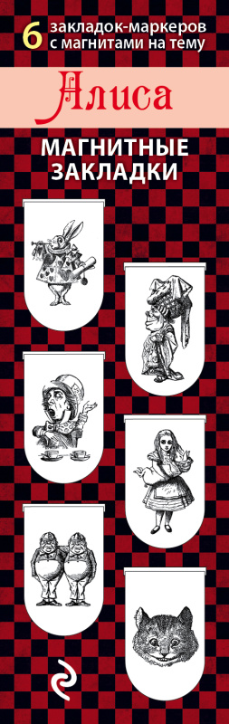 Очаровательные магнитные закладки на любой вкус – новый удобный формат! Используя их в качестве книжных закладок, вы сможете попутно наслаждаться фрагментами знаменитых иллюстраций Джона Тенниела к "Алисе в Стране Чудес". Прекрасный, практичный и оригинальный подарок всем любителям искусства!