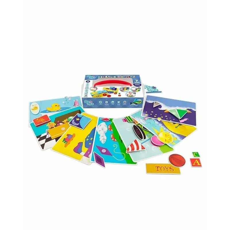 В комплекте вы найдете множество деталей-липучек и 7 игровых полей. Правила игры будут понятны даже самым маленьким детям: необходимо в правильном порядке разложить элементы по цветам, размерам или по другим качествам.
