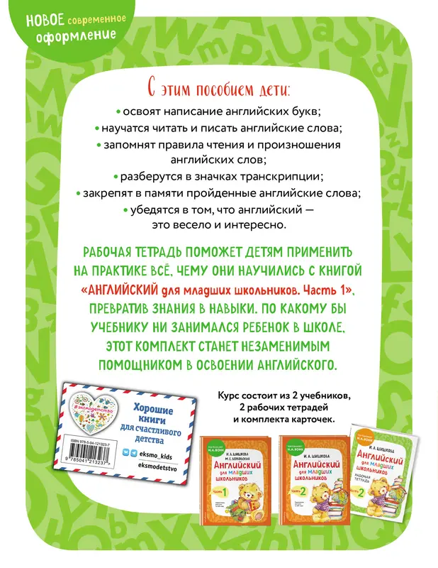 Преподаватели и репетиторы, которые помогают младшим школьникам осваивать английский язык, высоко ценят комплект "Английский для младших школьников". Рабочая тетрадь содержит множество веселых заданий, с которыми легко будет научиться читать и писать по-английски, освоить английские буквы и знаки транскрипции, повторить слова, с которыми учащийся познакомился в книге. По какому бы учебнику ребенок ни занимался в школе, "Английский для младших школьников" поможет ему уверенно освоить основы английского языка, заложив надежную базу для совершенствования в нем. "Английский для младших школьников" подойдет для занятий с преподавателями, репетиторами и родителями.