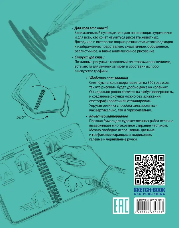 Скетчбук - это настоящая находка для творческих людей. Он может служить одновременно и учебником для рисования, и тетрадью для записей и рисунков, ведь на его страницах есть и упражнения для начинающих рисовальщиков, и пространство для собственных креативных идей. Удобный корешок на пружине позволяет повернуть блокнот на 360 градусов и использовать в качестве планшета, чтобы записывать и зарисовывать прямо на ходу!