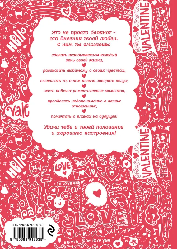 Это не обычный блокнот - это дневник хорошего настроения для влюбленных со множеством идей, вопросов и рисунков. Это дневник с пространством для творчества.