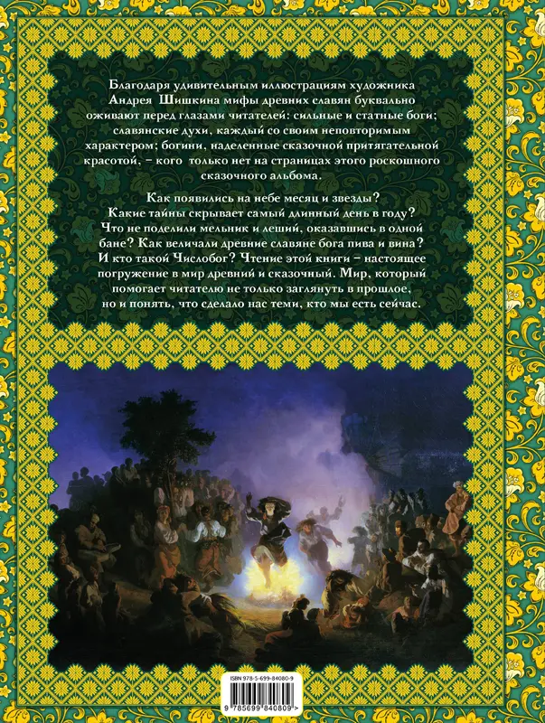 Перед вами - особенная книга, книга, которая делает сильнее каждого человека, который интересуется своими корнями. Здесь вы найдете мифы и легенды, докатившиеся до нас волшебным эхом от наших мудрых и прекрасных предков - древних славян. Благодаря удивительным иллюстрациям художника Андрея Шишкина - картины характеров богов и духов - оживают перед глазами, помогая нам заглянуть в прошлое и понять, что сделало нас теми, кто мы есть сейчас. В книге собраны интереснейшие мифы и легенды, а также краткое описание характеров и привычек "главных героев" славянского эпоса,