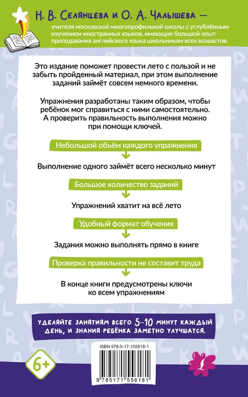 В этом пособии представлены задания, соответствующие общеобразовательной программе начальной школы по английскому языку. Все упражнения в книге небольшие по объему, это позволит каждому индивидуально подобрать нагрузку и сочетать ее с отдыхом во время летних каникул. Важно заниматься регулярно, это гарантирует эффективное усвоение грамматики и лексики. Удобный формат издания позволит выполнять все задания прямо в книге и использовать пособие как дома, так и в дороге. Проверить правильность выполнения заданий можно при помощи ключей.