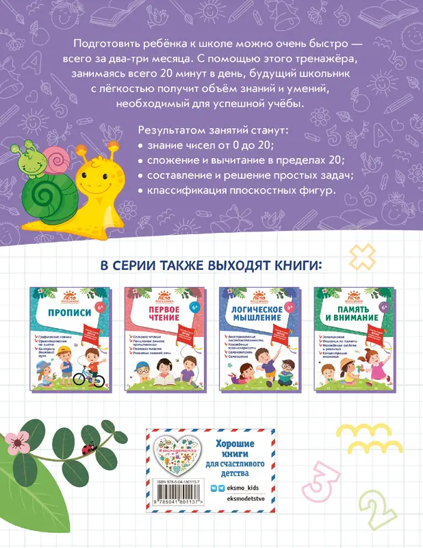 Готовность ребёнка к занятиям математикой в школе определяется главным образом уровнем владения базовыми знаниями и графическими навыками. Кроме того, важны усидчивость, нацеленность на достижение результата и способность концентрировать внимание. Занимаясь с данным пособием при помощи взрослых, дошкольник закрепит навыки счета, научится решать примеры и задачи, соответствующие его возрасту, и повысит свою мотивацию к учебной деятельности. Сборник заданий разработан в полном соответствии с требованиями ФГОС дошкольного образования.