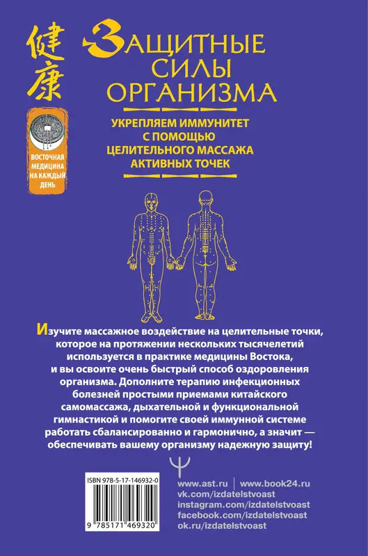 Мы знаем: если иммунная система работает сбалансировано и гармонично, организм, в большинстве случаев, сам справляется со многими заболеваниями. Как же помочь иммунной системе работать в таком режиме? Несомненно, необходимо полноценное питание, отказ от вредных привычек, нормальный ночной сон, посильные физические нагрузки — баланс и гармония во всех сферах жизни помогут сбалансировать и иммунную систему. Но это еще не все. На протяжении тысячелетий китайская медицина накапливала знания о сбалансированной работе человеческого организма и способах влияния на него. Для того чтобы энергия ци — носитель жизненной силы — циркулировала без затруднений, поддерживая все системы организма в гармоничном состоянии, необходимо при помощи специальных приемов воздействовать на биологически активные точки тела и выполнять упражнения китайской гимнастики — это поможет вам сохранить и укрепить свое здоровье даже в период массовых заболеваний.