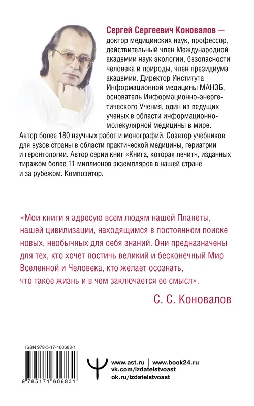 Читатель также найдет в книге "сжатую теорию": информацию о Вселенной и человеке с точки зрения Информационно-энергетического Учения, фрагменты бесед Доктора с залом, выдержки из писем — все то, что необходимо для настроя на лечение и его эффективного проведения.
