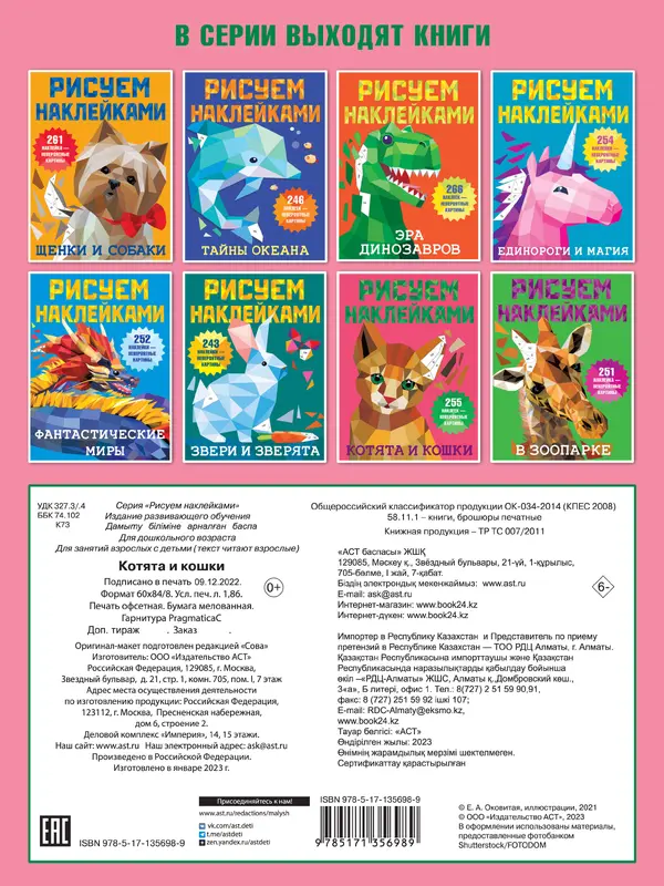 "Котята и кошки" — самая настоящая волшебная книжка для юных художников. Это красочные иллюстрации + более 250 геометрических стикеров. Ребята узнают, что рисовать можно не только карандашами, фломастерами или красками, но и наклейками. Получаются картинки с 3D-эффектом! Достаточно подобрать наклейки по номерам. Ребёнок удивится и обрадуется, когда котята и кошки на страницах станут красочными и объёмными. Юным художникам обязательно понравятся интересные задания на развитие логики, памяти, внимания, мелкой моторики. Для дошкольного и младшего школьного возраста.