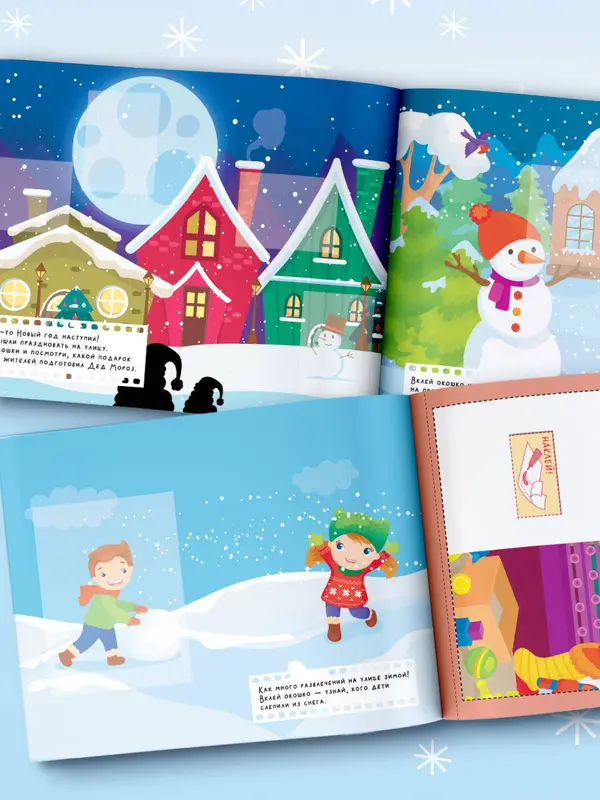 Серия "Моя волшебная книга с окошками" действительно полна волшебства. Ведь в ней нарисованные изображения оживают по-настоящему! Вырежьте окошко, приклейте в специальную рамку и… На новогодней ёлке появятся яркие украшения, дети слепят снеговиков, а над городом засияют разноцветные огни праздничного салюта. Данная книга станет для детей отличным подарком на Новый год. Ребёнок проведёт время с пользой: выполнит увлекательные задания и научится усидчивости. Также книга поможет в развитии мелкой моторики и нестандартного мышления.