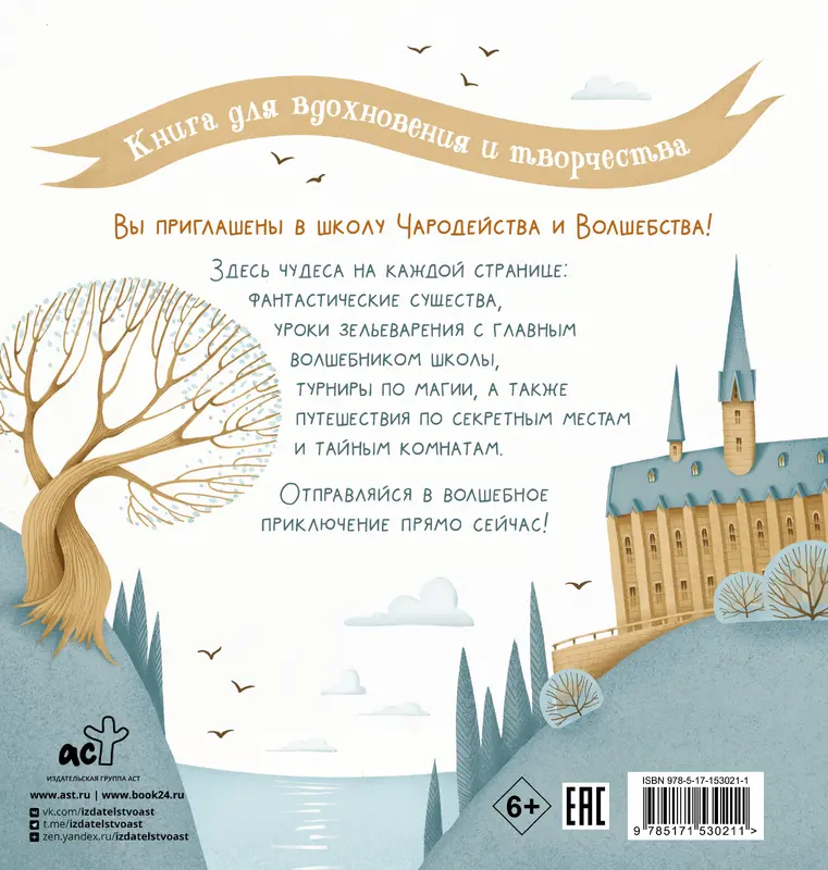 Книга для вдохновения и творчества. Вы приглашены в школу Чародейства и Волшебства! Здесь чудеса на каждой странице: фантастические существа, уроки зельеварения с главным волшебником школы, турниры по магии, а также путешествия по секретным местам и тайным комнатам. Отправляйся в волшебное приключение прямо сейчас!