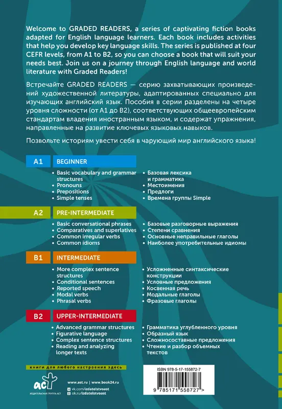 Текст произведения сокращен и адаптирован для уровня A2. Все более сложные слова вы найдете в словариках, расположенных после каждой главы. В конце книги даны упражнения на проверку понимания прочитанного, закрепление новых слов и работу с текстом. Предложенные читателю задания составлены таким образом, чтобы сделать опыт взаимодействия с книгой более глубоким и многогранным.
