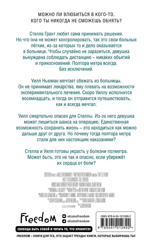 Нашумевший роман, экранизация которого недавно вышла на экраны страны! В главной роли Коул Спраус. Можно ли влюбиться в кого-то, кого ты никогда не сможешь обнять? Парень и девушка. Любовь с первого взгляда. Любовь, которой даже смертельная болезнь не сможет помешать. Стелла и Уилл бросают вызов судьбе и идут наперекор всем. Они встретились, когда больше всего нуждались в этом. Вот только их любовь обречена, ведь Уилл никогда не сможет коснуться Стеллы. Его прикосновение смертельно для девушки. Но истинная любовь не знает ни границ, ни запретов, и она определенно стоит целой жизни...