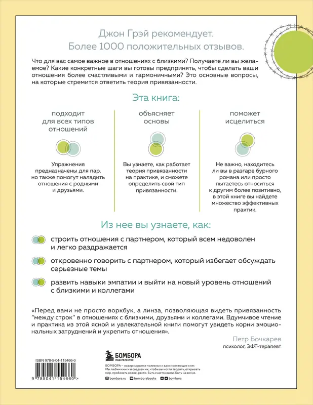 Что для вас самое важное в отношениях с близкими? Получаете ли вы желаемое? Какие кон-кретные шаги вы готовы предпринять, чтобы сделать ваши отношения более счастливыми и гармоничными? Это основные вопросы, на которые стремится ответить теория привязанности. По завершении работы с книгой – будете ли вы делать это в одиночку или с любимым человеком – вы начнете лучше понимать себя и своих близких. Делитесь полученными знаниями с друзьями и родственниками, чтобы открыть мир более здоровых и крепких отношений. А это именно то, что всем нам необходимо.