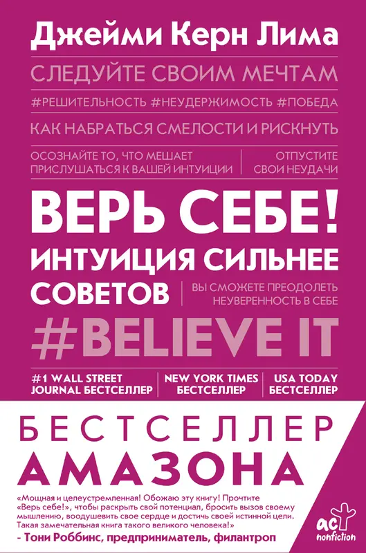 Джейми Керн Лима – первая женщина генеральный директор в истории бренда L'Oréal, успешный предприниматель, инвестор, а также мама двоих детей, оратор и лидер мнений. Акцент на вере и любви к клиентам привели ее в список самых богатых женщин Америки по версии Forbes. Сейчас Джейми вдохновляет женщин по всему миру и помогает им бороться с последствиями рака. В книге "Верь себе!" вы познакомитесь с судьбой женщины, которая смогла основать компанию IT Cosmetics в своей гостиной, превратить ее в крупнейший бренд элитной косметики в стране и продать его марке L'Oréal за миллиард долларов. Автор делится своими личными и профессиональными уроками, которые она извлекла из некоторых действительно трудных, болезненных падений, а также почти невероятных, сказочных взлетов. Книга поможет вам узнать: 1. КАК СЛЕДОВАТЬ СВОЕЙ ИНТУИЦИИ И РИСКОВАТЬ Мы часто становимся пленниками стереотипов именно из-за того, что не верим в свою истину. 2. ЧТО ВАЖНО БЫТЬ ХРАБРЫМ, А НЕ НРАВИТЬСЯ ВСЕМ Ненавистники – это сбитые с толку сторонники – один из ключей к успеху. 3. КАК ПЕРЕСТАТЬ НЕДООЦЕНИВАТЬ СЕБЯ У вас есть сила внутри прямо сейчас, чтобы верить в себя и идти к своим мечтам.
