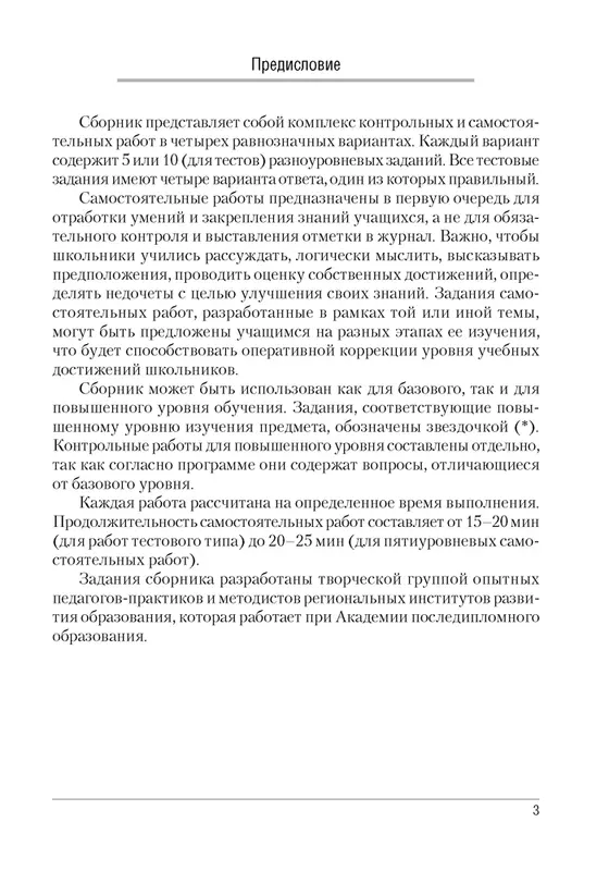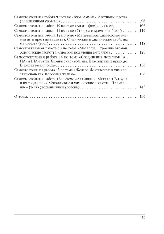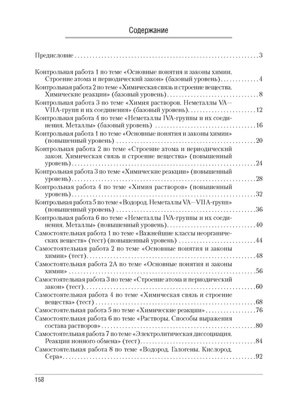 Сборник включает контрольные и самостоятельные работы по химии для 11 класса, представленные в четырех или двух (тесты) вариантах. Содержание работ соответствует учебным программам для базового и повышенного уровней.
