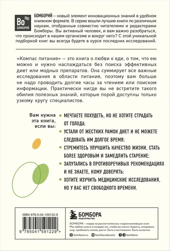 "КОМПАС ПИТАНИЯ" – это увлекательное путешествие в мир исследований пищевых продуктов и возрастных изменений. Больше нигде, кроме как в этой книге, вы не встретите такого обилия полезных знаний о еде и ее влиянии на вес и здоровье. Автор Бас Каст изучил сотни исследований и книг по диетологии и питанию, выделил самую актуальную информацию, а затем удобно структурировал ее для вас. Ключевые вопросы книги: как эффективно сбросить вес? Как посредством питания защитить себя от болезней? Как отличить мифы о питании от фактов? Можно ли с помощью тщательно подобранного рациона перехитрить биологические часы и остановить процесс старения? Не бойтесь! Автор не собирается навязывать жесткую диету, которой вы будете вынуждены по-рабски следовать. Вам не придется подсчитывать калории или какие-то баллы: ЕДУ НЕ НУЖНО СЧИТАТЬ, ЕЮ НУЖНО НАСЛАЖДАТЬСЯ! Внимание! Информация, содержащаяся в книге, не может служить заменой консультации врача. Перед совершением любых рекомендуемых действий необходимо проконсультироваться со специалистом.